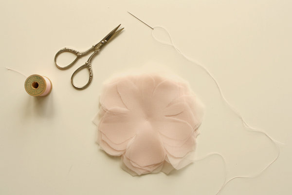 3º Descolocamos un poco las telas para que le de aspecto mas natural y queden los pétalos intercalados: