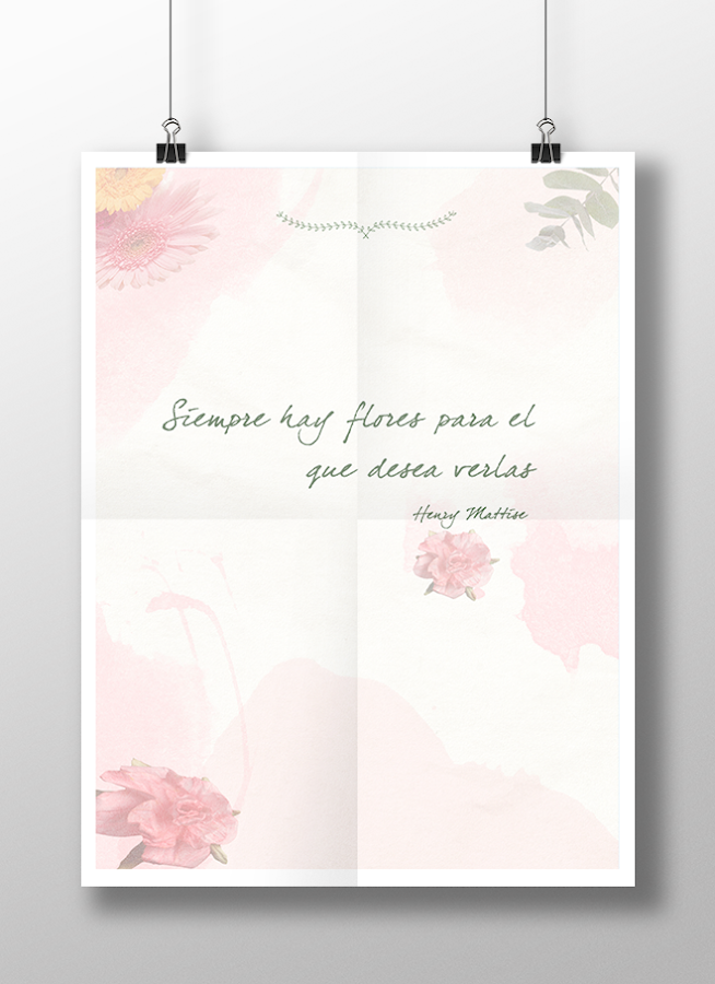 Hoy WEDECOse centrará en la temática de, decorando con flores. Ya decía que este mes iba a estar completamente vinculado a las flores. En mi caso he querido decorar con una lámina cuya frase me parece muy representativa ?siempre hay flores para el que desea verlas? Soy una amante de las flores y en este caso he querido utilizarlas para decorar un cuadro en alguna pared de casa o incluso llevar siempre flores en nuestro móvil, así nos acompañan a todas partes, además de que aguantan más ^_^ También pueden descargarla aquí con texto o sin texto.