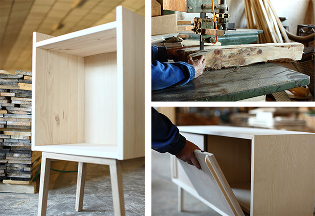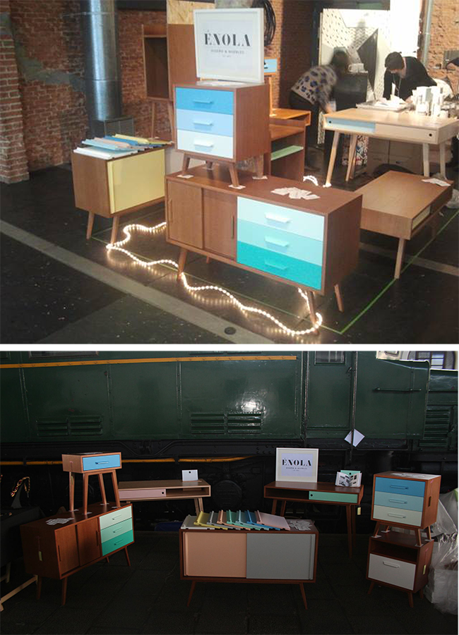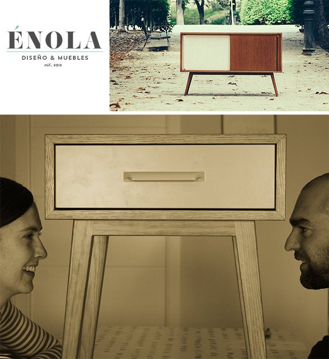 Los muebles de Énola los crean juntos, uno da la idea y el otro lo va matizando. Una vez diseñado mandan los bocetos a su carpintero, un señor que trabaja en la provincia de Toledo. Su carpintero, que tras vivir los años gloriosos del mueble ahora se va adaptando a las nuevas circunstancias, les gusta trabajar con él por el intercambio de conocimiento generacional y por su buen hacer con la materia.