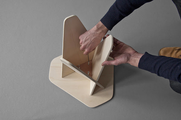 Esa sensibilidad del artesano se ve aquí desde la misma estética de la pieza, donde las partes encajables son las que crean su característica imagen. Pero, detrás de esa mesa de forma bonita, se esconde una auténtica obra industrial, en la que la placa superior de la mesa se fija con tornillos a un pedazo de madera de forma cónica, y el resto de piezas, que van ensambladas, funcionan como refuerzos estructurales. La idea que marca ambas cosas, tanto la estética como el diseño de la pieza, es que "la forma sigue la construcción", es decir, que la forma de las mesas viene marcada en gran parte por cómo se va a producir.