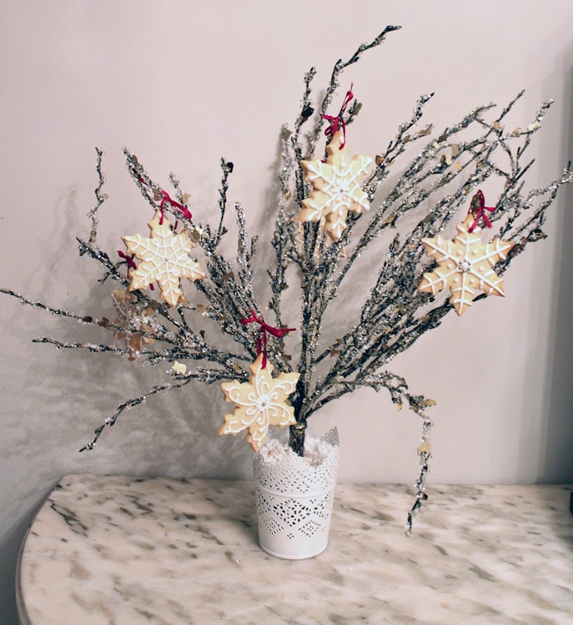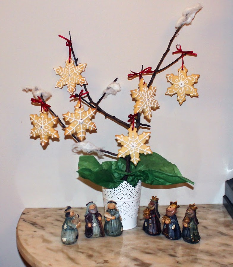 Lo que explicaré es cómo montar nuestro árbol a partir de unos cuantos materiales. Mi árbol es totalmente DIY, usé una rama de peral. Pero si conseguir una rama es complicado, podéis comprar un arbolito o una rama y colgar las galletas.Además esto es simplememte una idea. Podeís dejar volar la imaginación y decorar a vuestro propio árbolde galletas