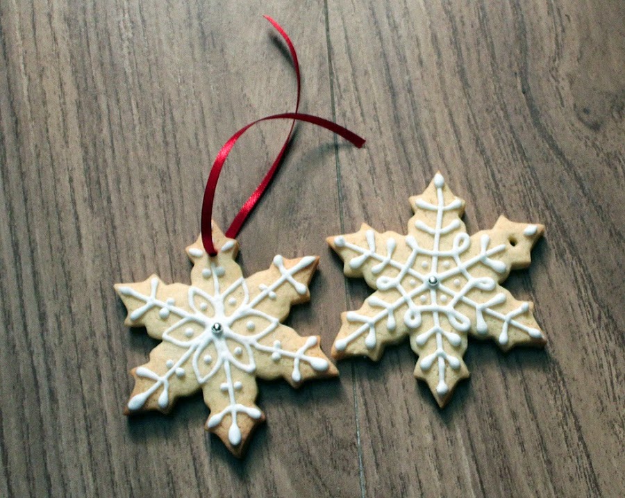 Las galletas las deberéis haber horneado con un agujero para poder pasar el lazo. Tened el cuenta que al hornear la galleta se expande, y por tanto el agujero se encoge. Si no queréis llevaros una sorpresa y encontraros con que el agujero a desaparecido, podéis hacerlo bastante grande o como hice yo. Hornearlas con el agujero atravesado por un palillo.