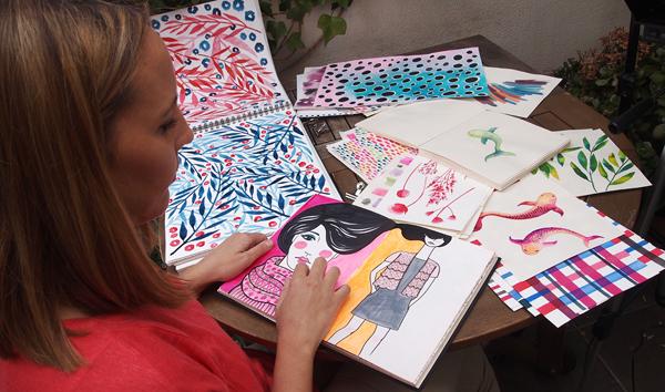 Mis dibujos en acuarela, ceras, rotuladores… dan como resultado un universo de estampados llenos de color que toman vida en las prendas que diseño.