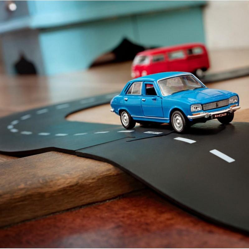 Carretera flexible de caucho: si vuestros peques son unos amantes de los transportes, éste es vuestro juguete .Con este pack de 24 piezas flexibles de caucho podemos montar, por ejemplo, un circuito cerrado de 140 cm. ¡enorme! Contiene 8 rectas, 12 curvas y 4 intersecciones rotuladas por ambos lados. Las piezas son aptas para interior y exterior, se pueden mojar y lavar en el lavavajillas. La verdad es que los materiales son increíbles y las posibilidades infinitas. La podéis ver aquí.