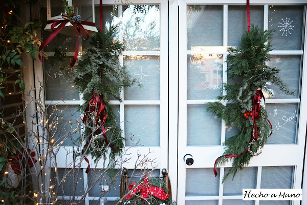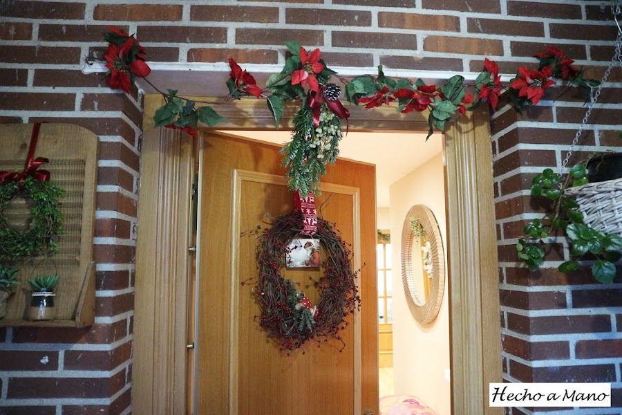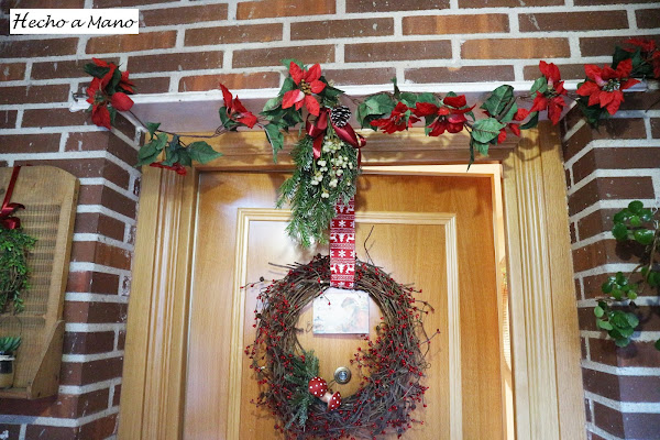 ........Y elegantes ramos naturales, que he tejido con esmero, de pino y arizónica decoran las dos hojas de la puerta de entrada dando la bienvenida a cada uno de los amigos y familiares que nos visitarán .
