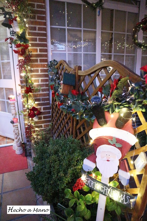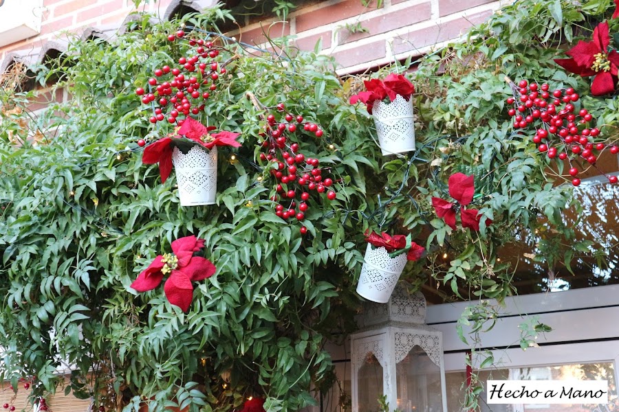Alegres guirnaldas vestidas con poinsetias, farolillos un simpático Santa......