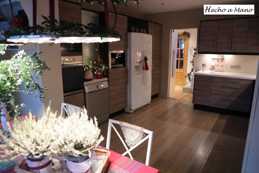 Una vez dentro, nos vamos hacia la cocina. Tú que ya me conoces, sabes que me gusta adornarla porque en Navidad se pasa mucho tiempo en ella, cocinando y haciendo dulces para nuestra gente.