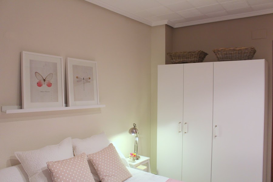 Creo que este es mi proyecto favorito, llevaba años detrás de convertirlo en un dormitorio de invitados, antes era la habitación de estudios y os podéis imaginar como estaba (ni foto hemos sacado). La idea era tener almacenaje, rincón de lectura y una cama de matrimonio, un dormitorio con todas las comodidades para los que fueran a habitarlo. Seguimos con la misma gama de pintura, Nepal beig s ...
