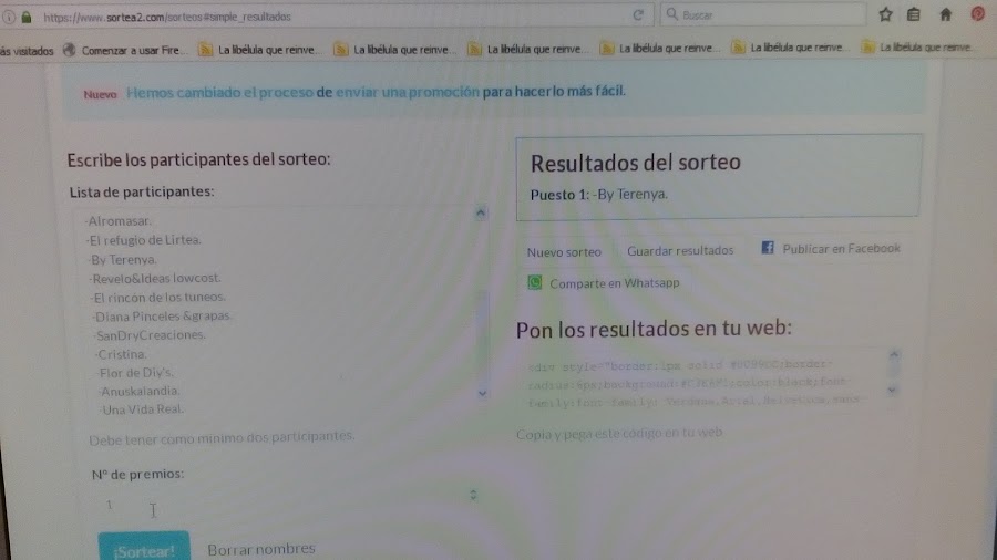 Y ahora la foto del Sortea2 con el resultado de la ganadora...