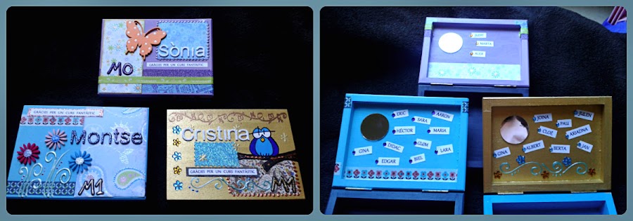 Para este tipo de regalos, las cajas han triunfado (y ella fue una de las primeras en pedirlas). Personalizadas con el nombre, el curso, y los nombres de los alumnos en el interior.