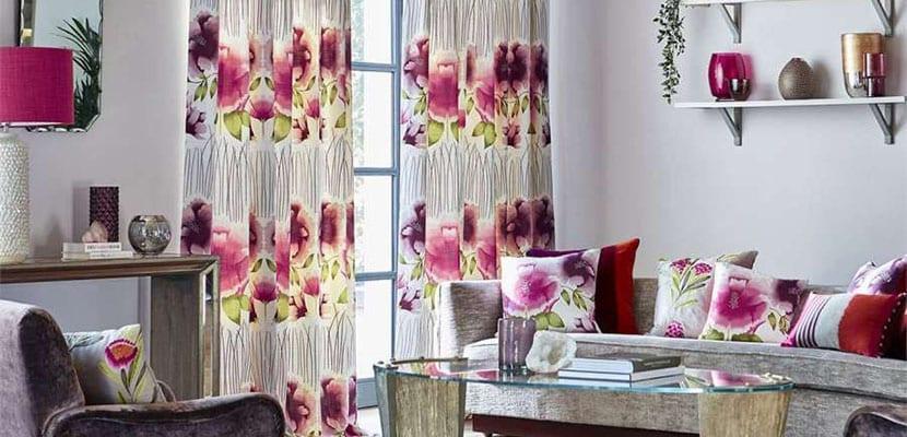 Las cortinas siempre son un detalle interesante para poder decorar nuestro hogar con dibujos de flores. En este caso podemos ver estos dibujos no solo en las cortinas, sino también en otros textiles, para tenerlo todo a juego. Desde los cojines a las alfombras pueden ir a juego con las cortinas. El motivo floral sirve para casi cualquier rincón y época del año. Durante el invierno podemos añadir flores en tonos más oscuros y en verano utilizar colores como el naranja o el amarillo para dar más colorido y luminosidad.