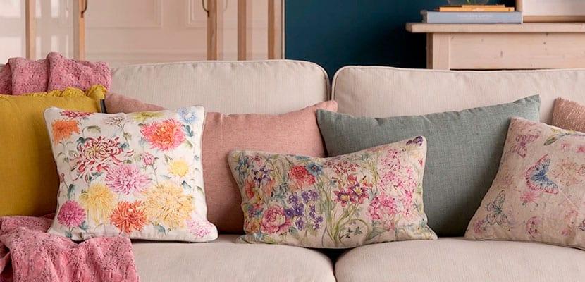 Si lo que deseamos es añadir solamente un pequeño detalle que tenga flores, también podemos pensar en los complementos. En este caso nos referimos a los cojines, los cuales se pueden poner en el dormitorio, en un pequeño sillón o en el sofá del salón. Son piezas que ayudan a decorar con pinceladas de estampados y colores estas zonas del hogar.