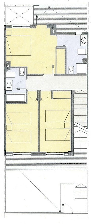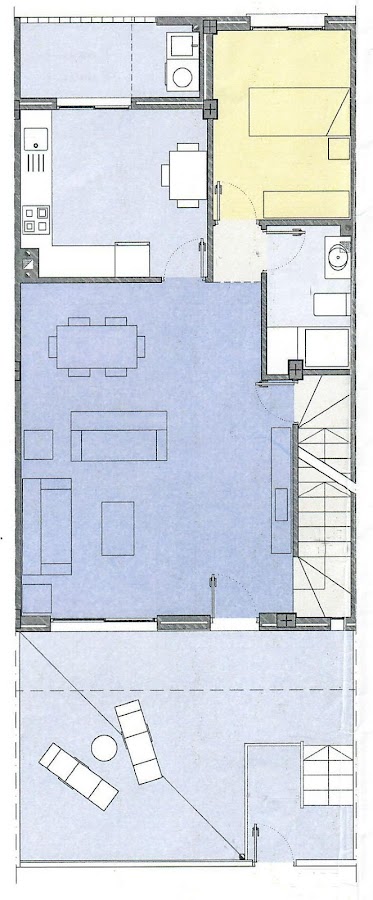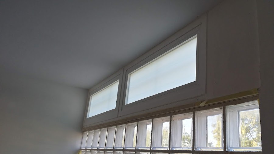 Se instaló una corredera de vidrio traslucido en el acceso de la escalera para mejorar la climatización de la planta baja.