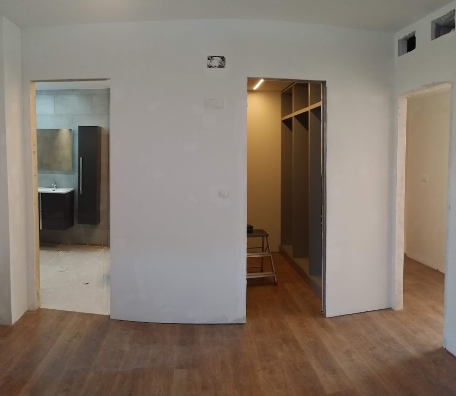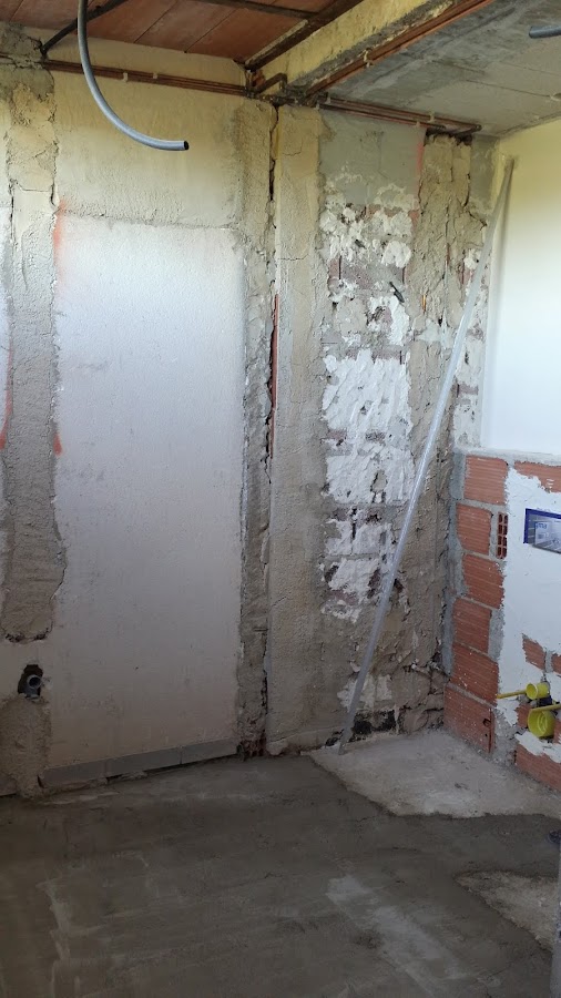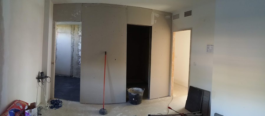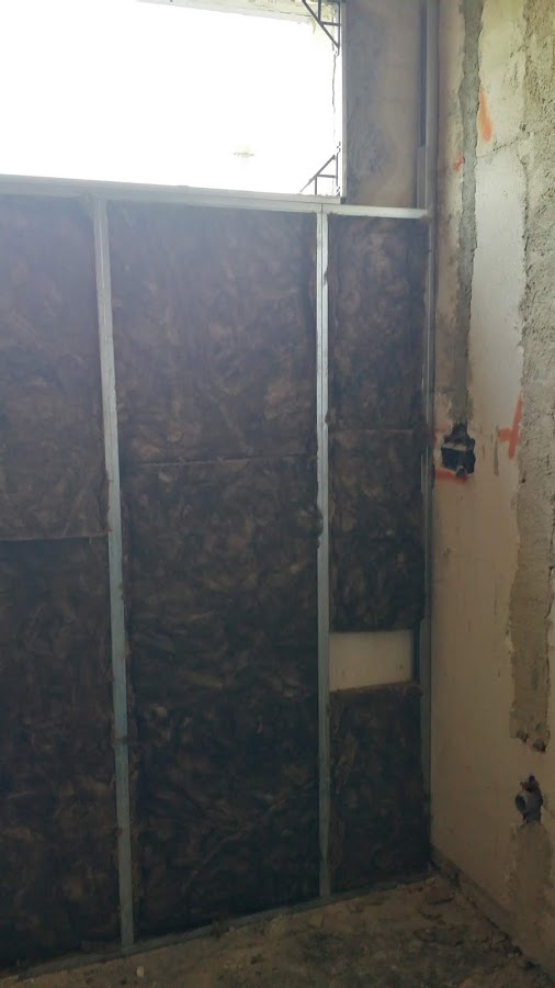 Doble tabique en cabecero de cama del dormitorio principal con aislante (medianera)