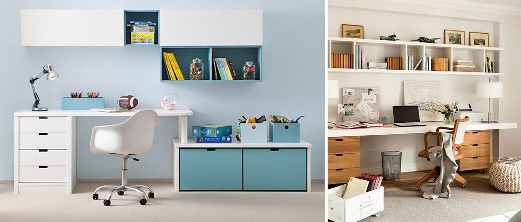 Destina un espacio de almacenaje, para guardar los objetos que necesite tener a mano para realizar sus tareas, estantes, armarios suspendidos, o algunos cestos ayudarán a mantener el espacio ordenado y que no parezca una leonera.