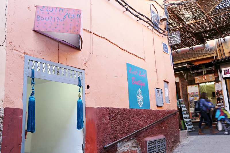Al estar situado en una estrecha y atiborrada calle del zoco, rodeado de tiendas